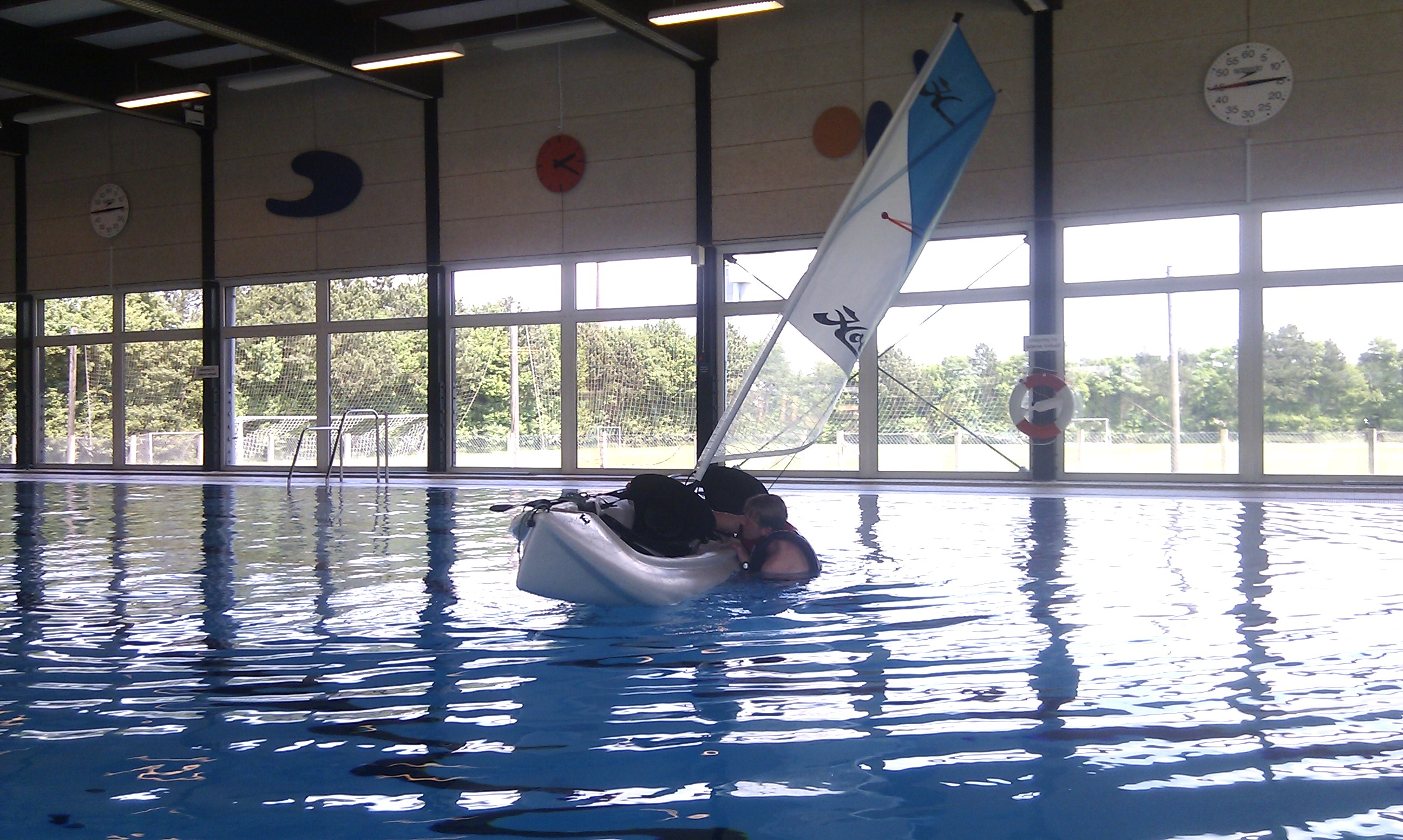 Vi var også i 2013 en tur i svømmehallen med vores kajak. Vi havde lejet hele svømmehallen, og øvede redninger, vending af kajakken, hvad vi gør hvis kajakkerne driver væk osv. Det giver en god tryghed at vide hvad vi gør i en hver situation.