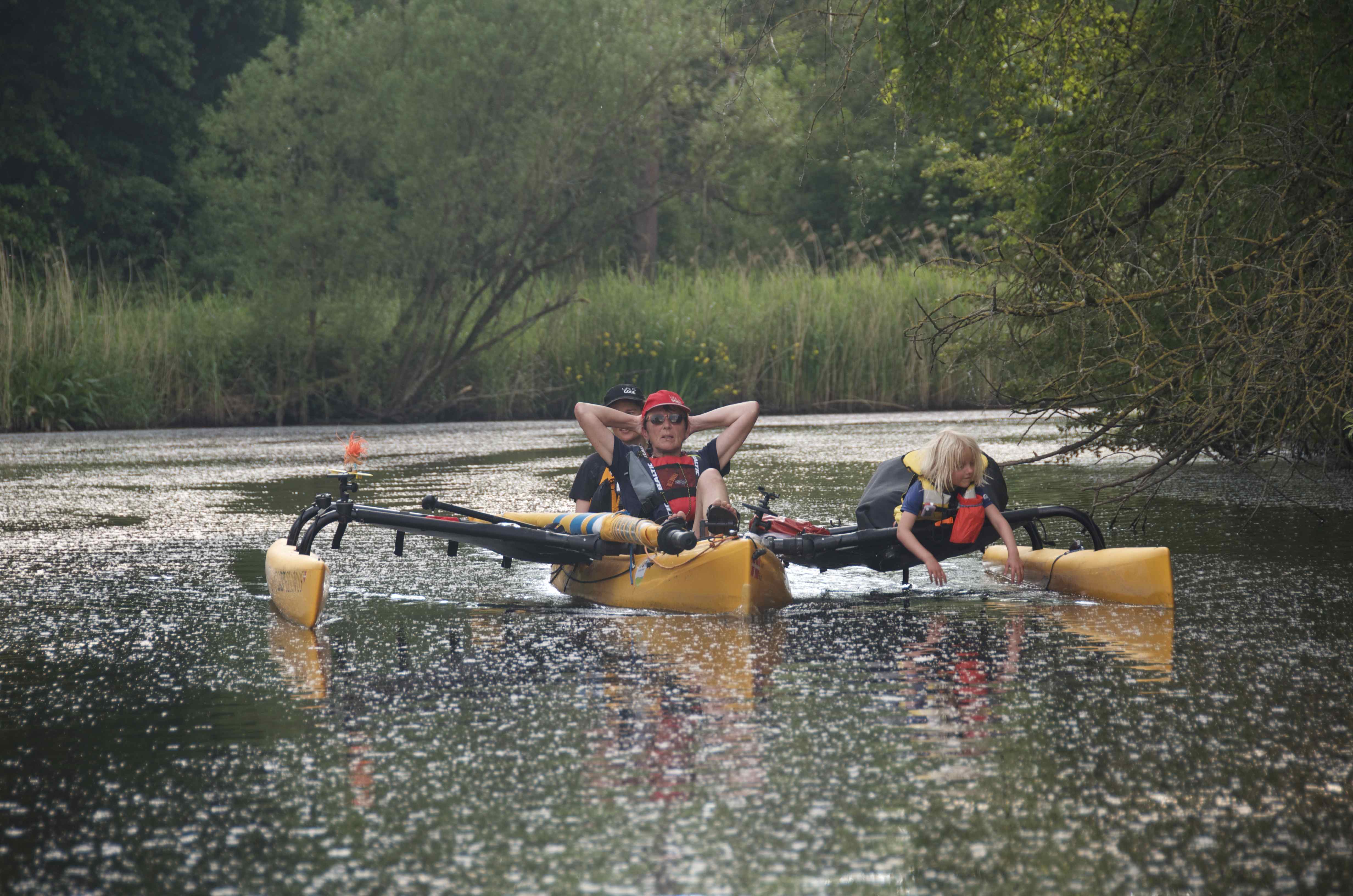 Hygge på Kielkanalen, Liva og jeg lytter til musik og prøver at få lidt skygge. / Cosy times on the Kielkanal, Liva and I are listening to music and trying to have a little bit of shadow .