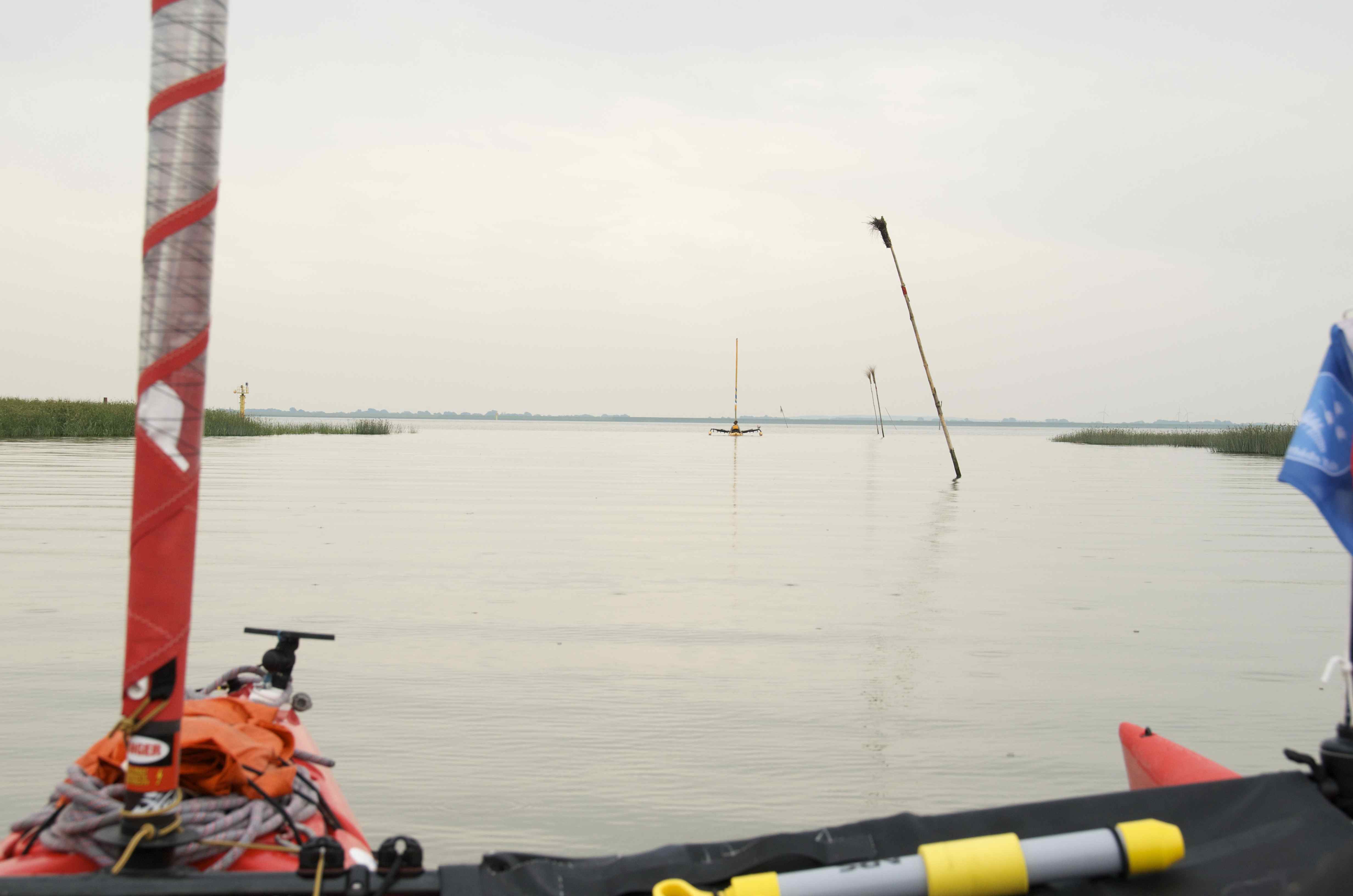 Vi mærkede ikke rigtig til tidevandet, før vi så den første bøje og prøvede at går mod strømmen, så stod vi bare stille. Det var noget af en oplevelse at prøve sådan en kraftig strøm. / We didn’t really notice the tide current but when we saw the first watermarker leaning over like this, we turned around and tried to sail against the current: we stood still. Great experience trying such a fast current.