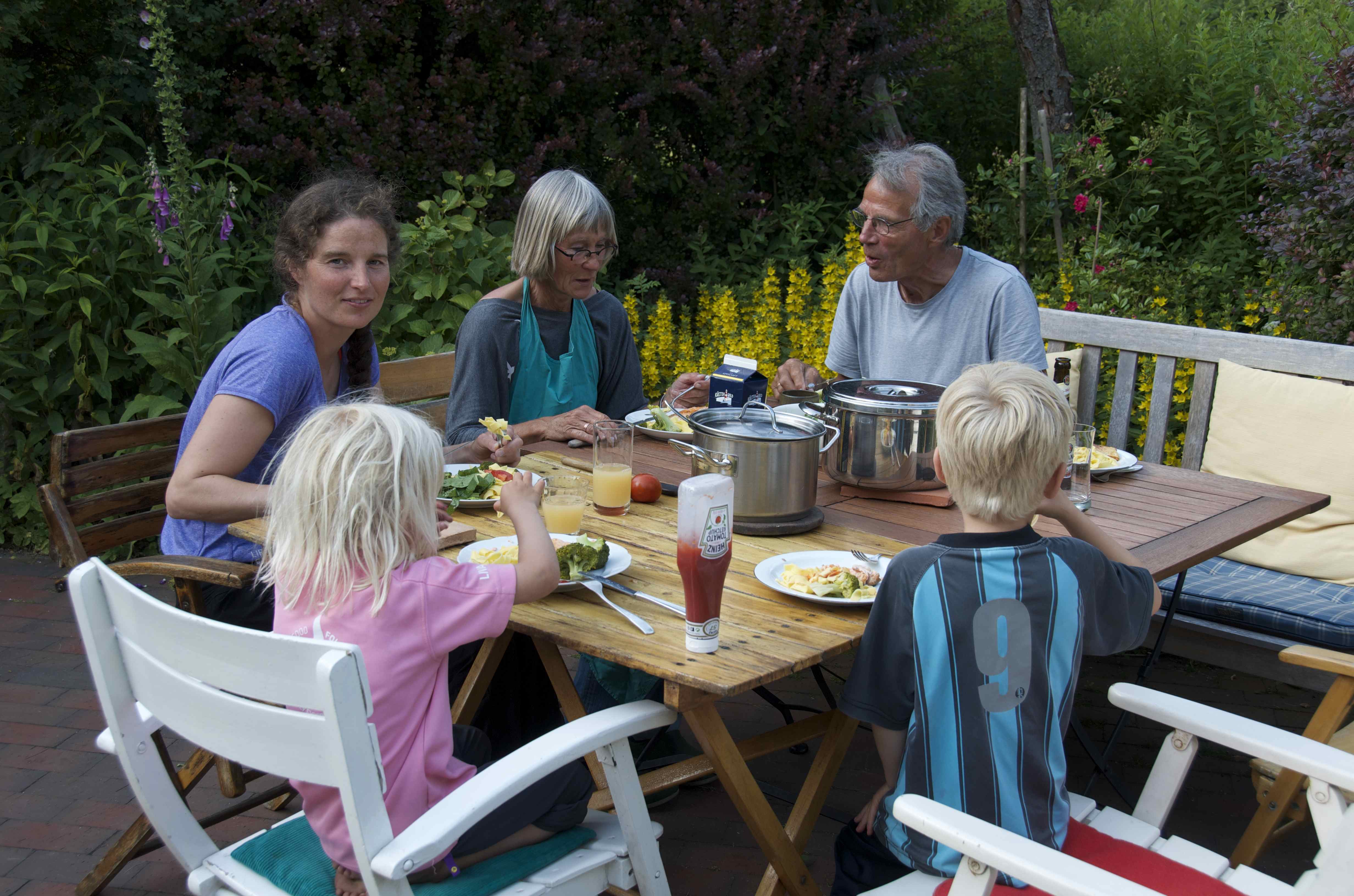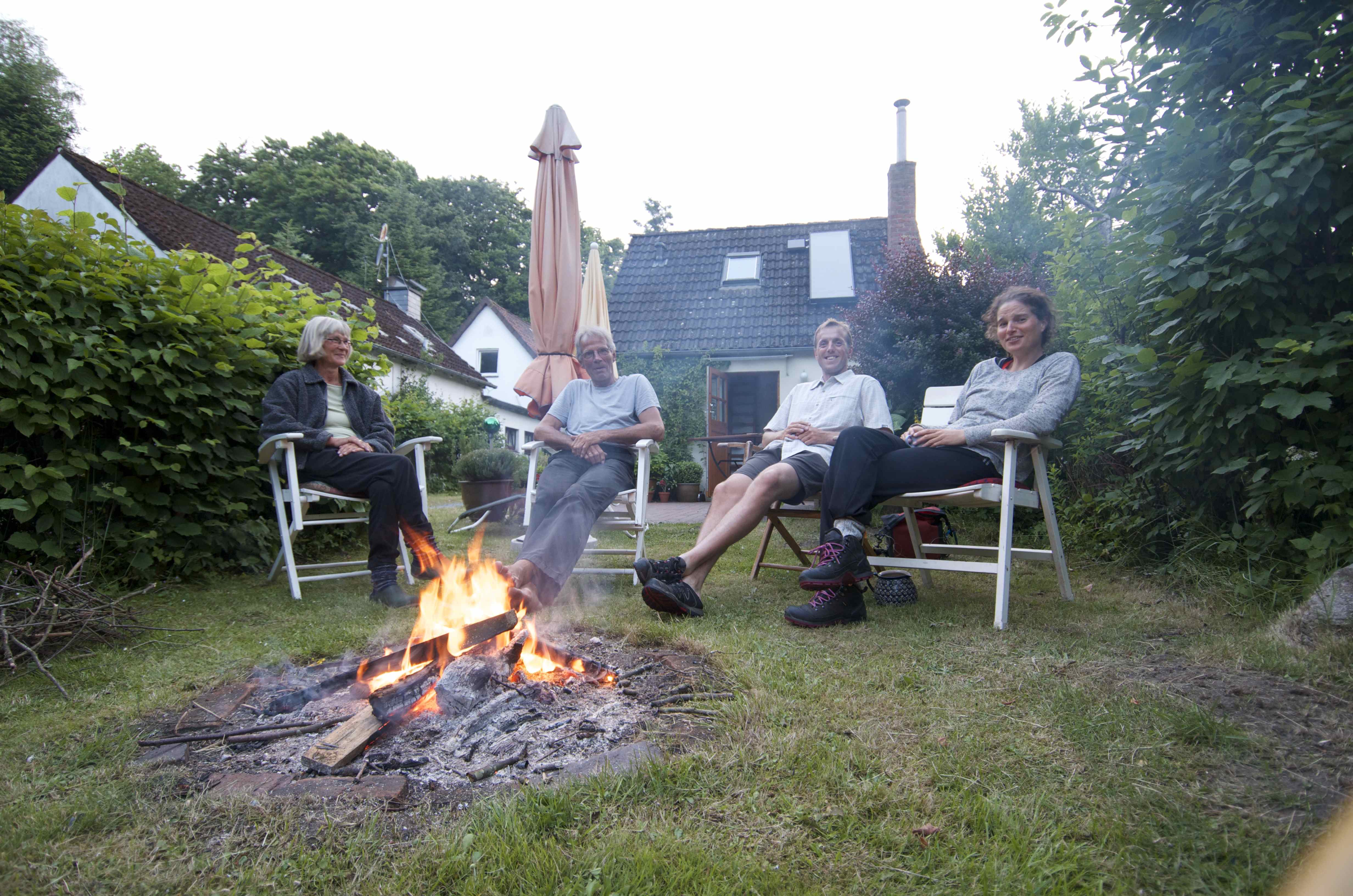 Hygge i baghaven, i baggrunden ser man deres sommerhus som ligger i baghaven til deres rigtige hus./ Cosy times in the backyard. Behind us you can see there summerhouse, which lays in the backyard of there house 🙂