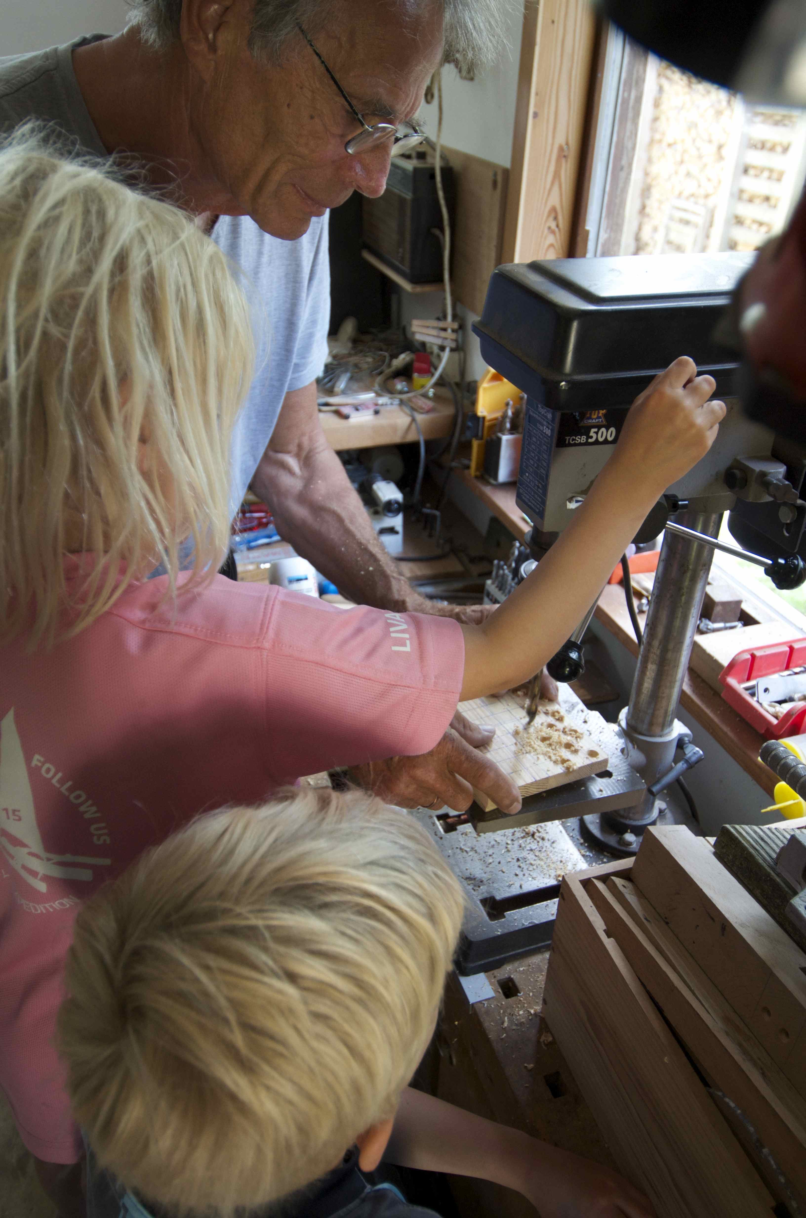 Sammen med Chris lavede børnene hver deres møl og dam spil / Together with Chris the kids made each a game out of wood.Her er køkkenet i sommerhuset, hvor de laver mad med et brændekomfur. Hus er ikke mere end 16 m2 stort og de bor der fra april til september. / This is the kitchen in the summerhouse where they are still cooking with wood, awesome. The summerhouse is only about 16 m2 and they live there form April to September.De har en fantastisk flot have, med frisk grønsager og salat som vi nød godt af:-) / They have a really nice garden, with salat and vegetables which we enjoyed a lot.