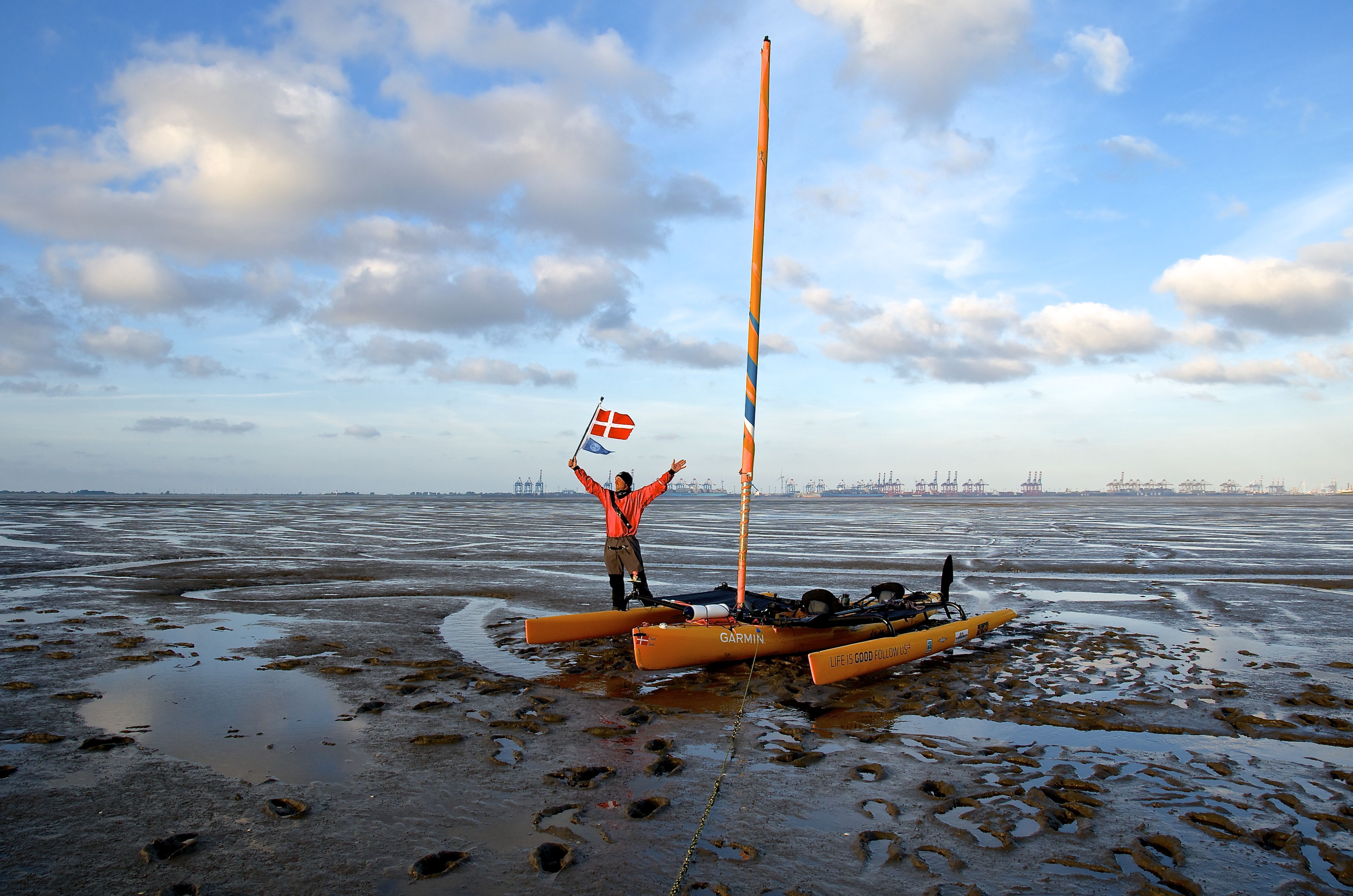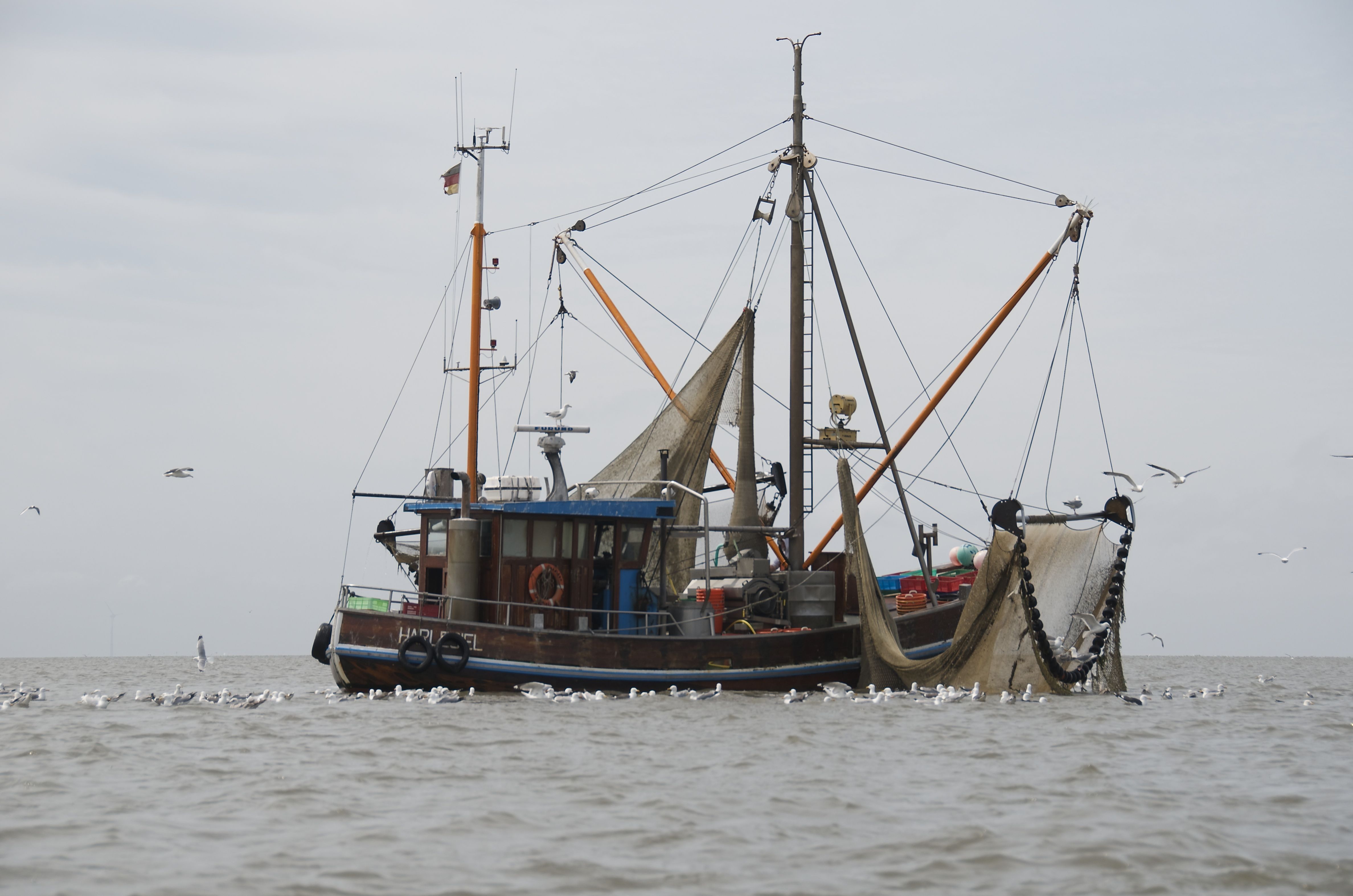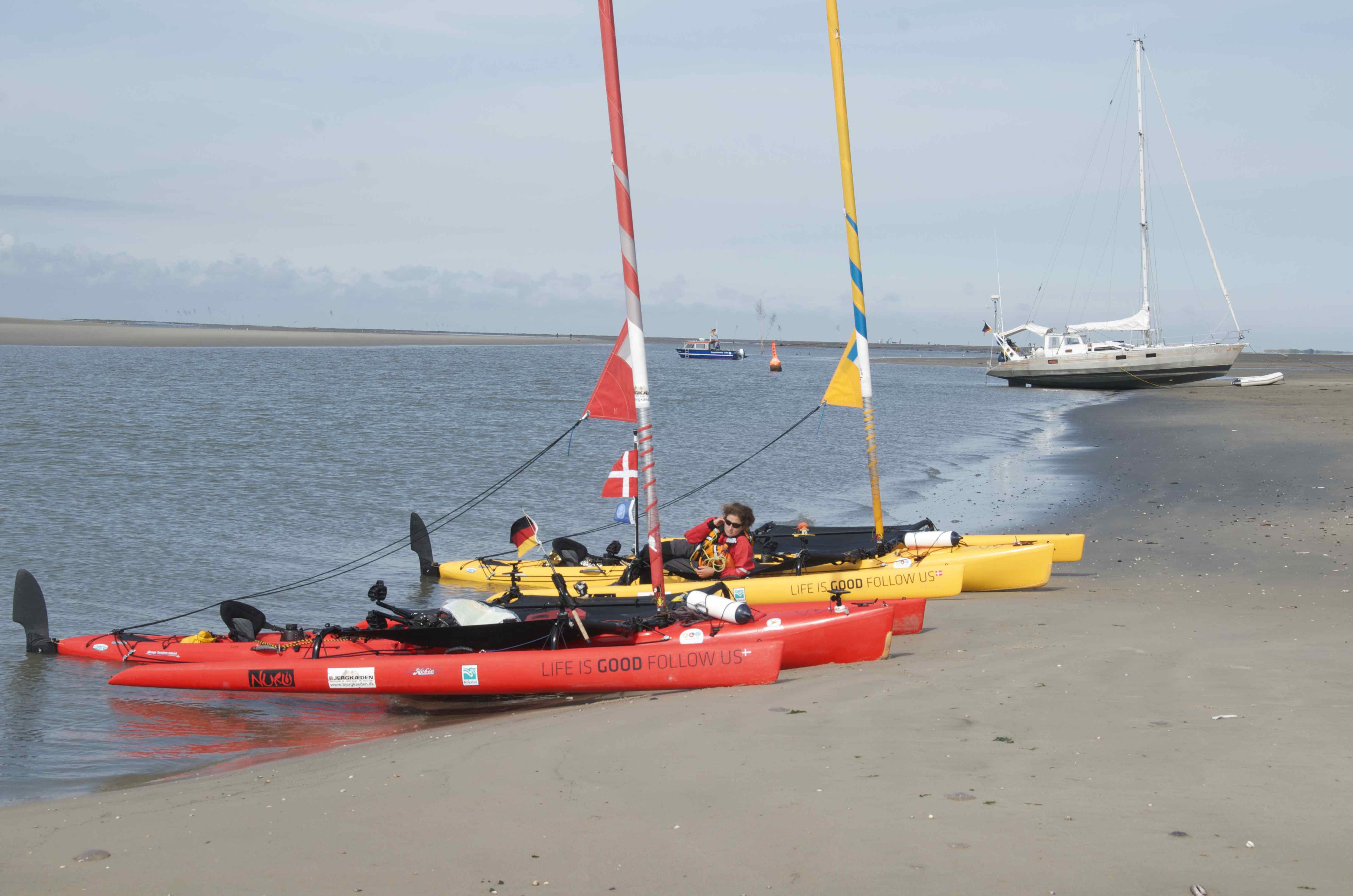 Krabben, små rejer er en lokal delicatesse / Krabben, small shrimps are a local delicacy.Sjov på Vadehavet, kraftig vind, bølger og medstrøm, Op mod 20 km. i timen. 🙂 / Having fun in high winds, waves and strong current, top speed around 20 km.Wating again for high tide, together with other boats.Makers on the water!Great experience to stay the night a sea, and to sail in the dark, that was a first.