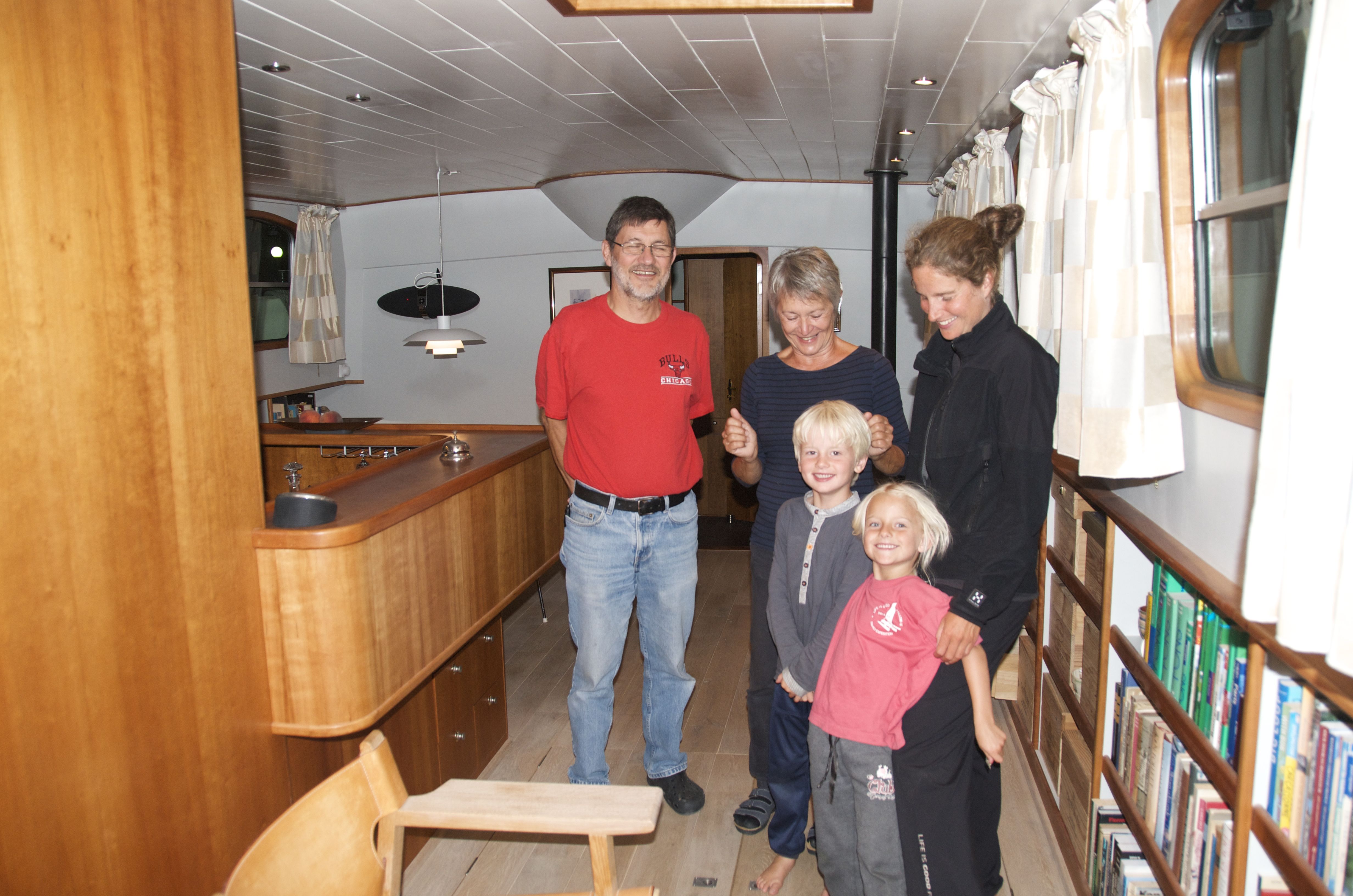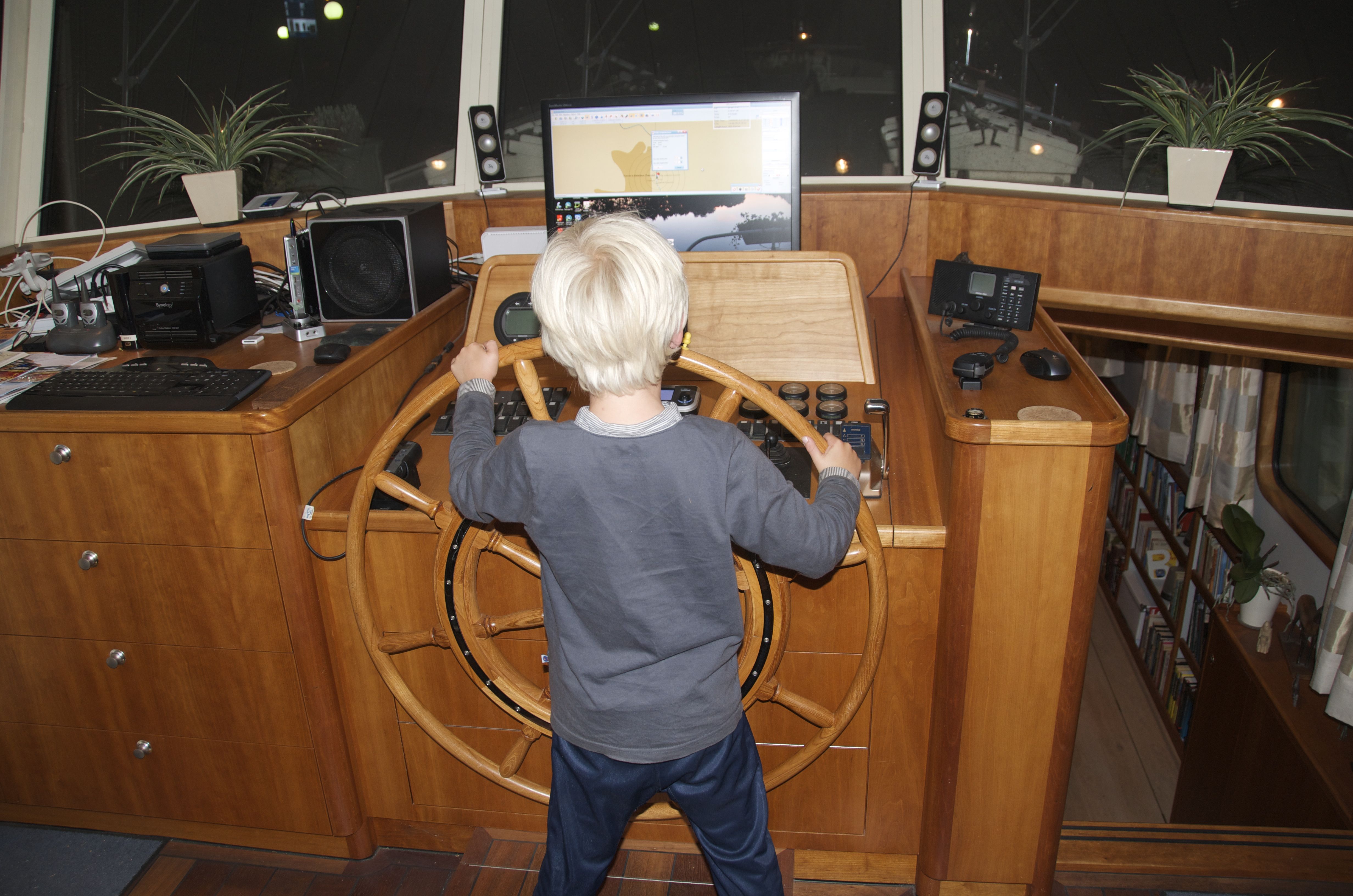 The beautiful boat of Bente and Kurt / Bente og Kurts utrolige flotte båd.We saw the whole boat and the kids loved it, many secret spots / Vi så hele båden og børnene elskede det, der var mange hemmelige rum.Maybe a new captain in the making / Måske en kommende kaptain.