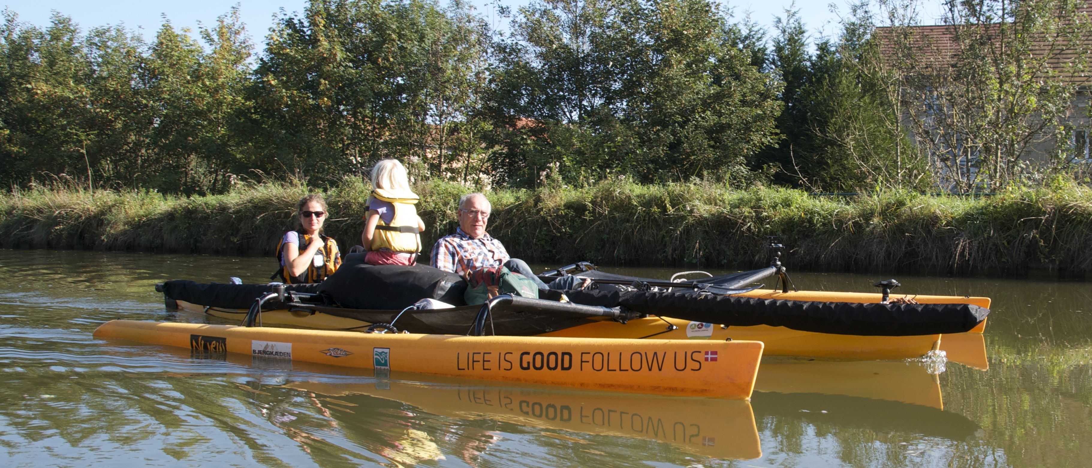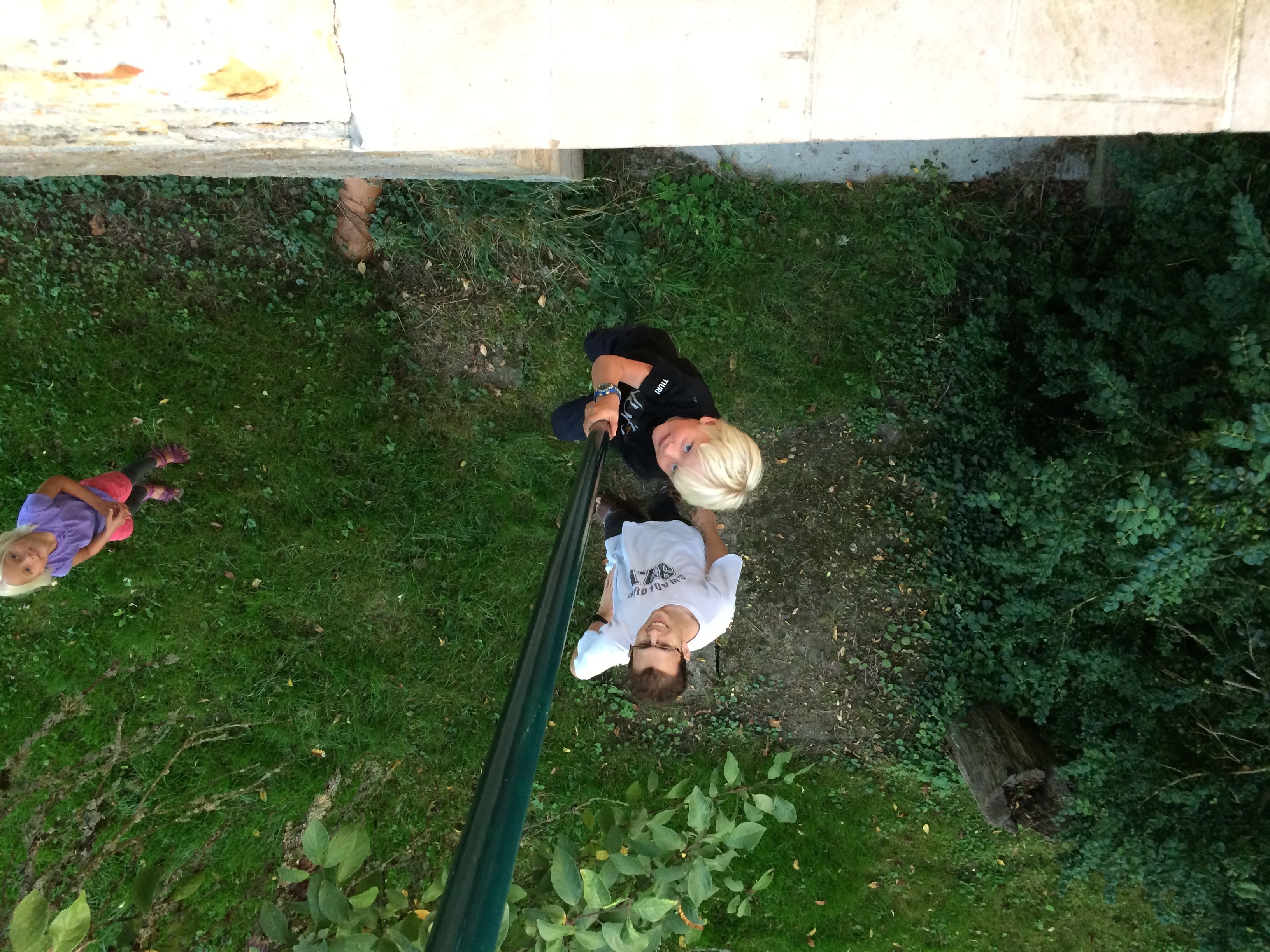 First meeting with Jean-Paul, Erik and his daughter / Første møde med Jean-Paul, Erik og hans datter.Jean-Paul enjoying a ride in the Hobie Kayak / Jean-Paul nyder turen i Hobie Kajakken.Aline’s families great old house, with a climbing wall, love that / Aline’s store flotte familie huse, med en klatrevæg på side, lige min stil.And a firemans staircase / Og et brandmands ‘rør’And peaches in the garden / og med ferskner i haven, lækkert.Aline and her family, this is what makes this trip so special, meeting the people. Thanks guys!!/ Aline og hendes family, dette er hvad der gør denne rejse så speciel, mødet med folk Tak skal I have.