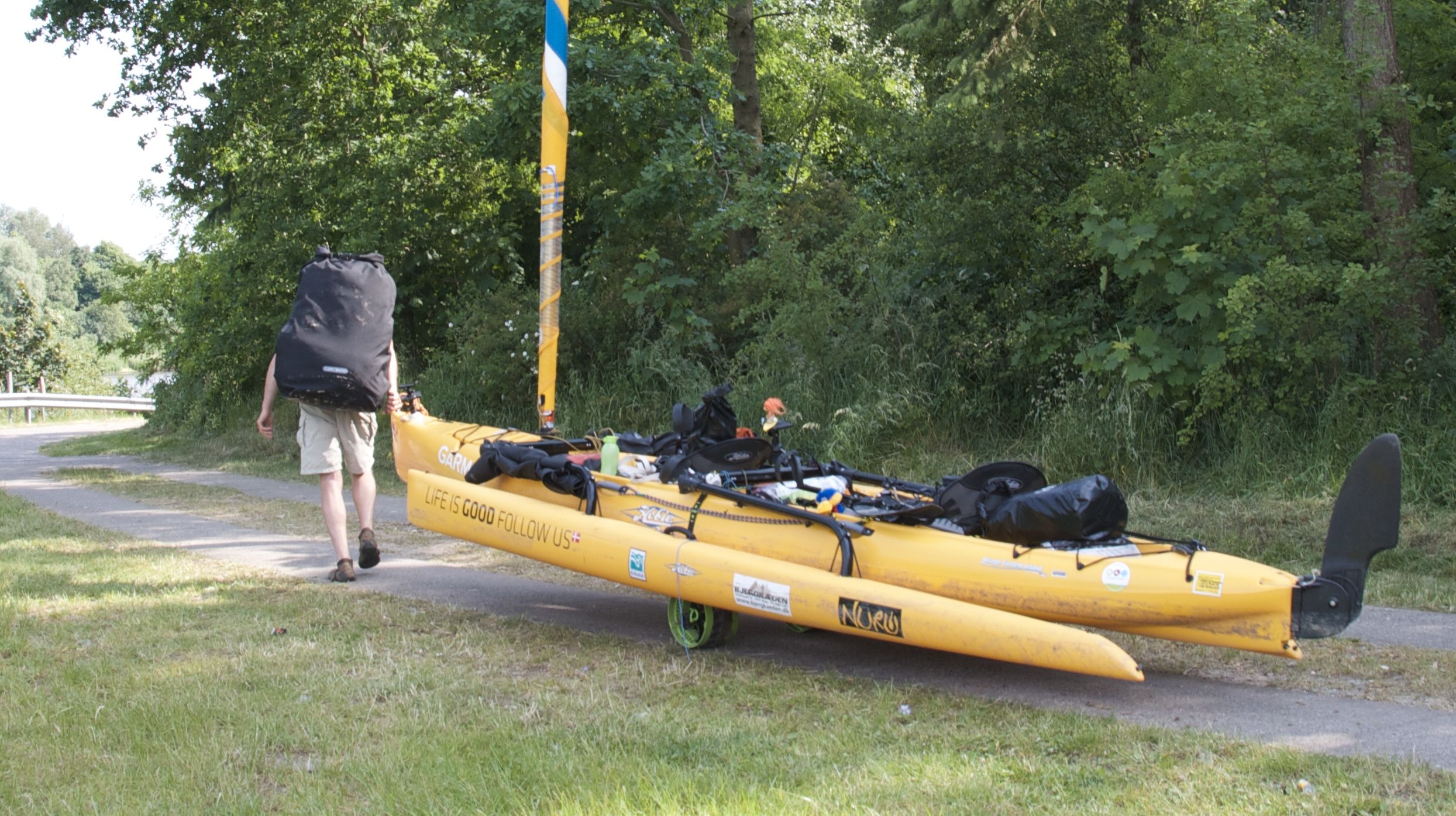 We also have a set of wheels The C-TUG with us, also made by Railblaza. Till now we only needed them twice. Our kayaks where very heavy loaded when we used the wheels, so in the soft sand it didn’t work, but for the rest it was fine.