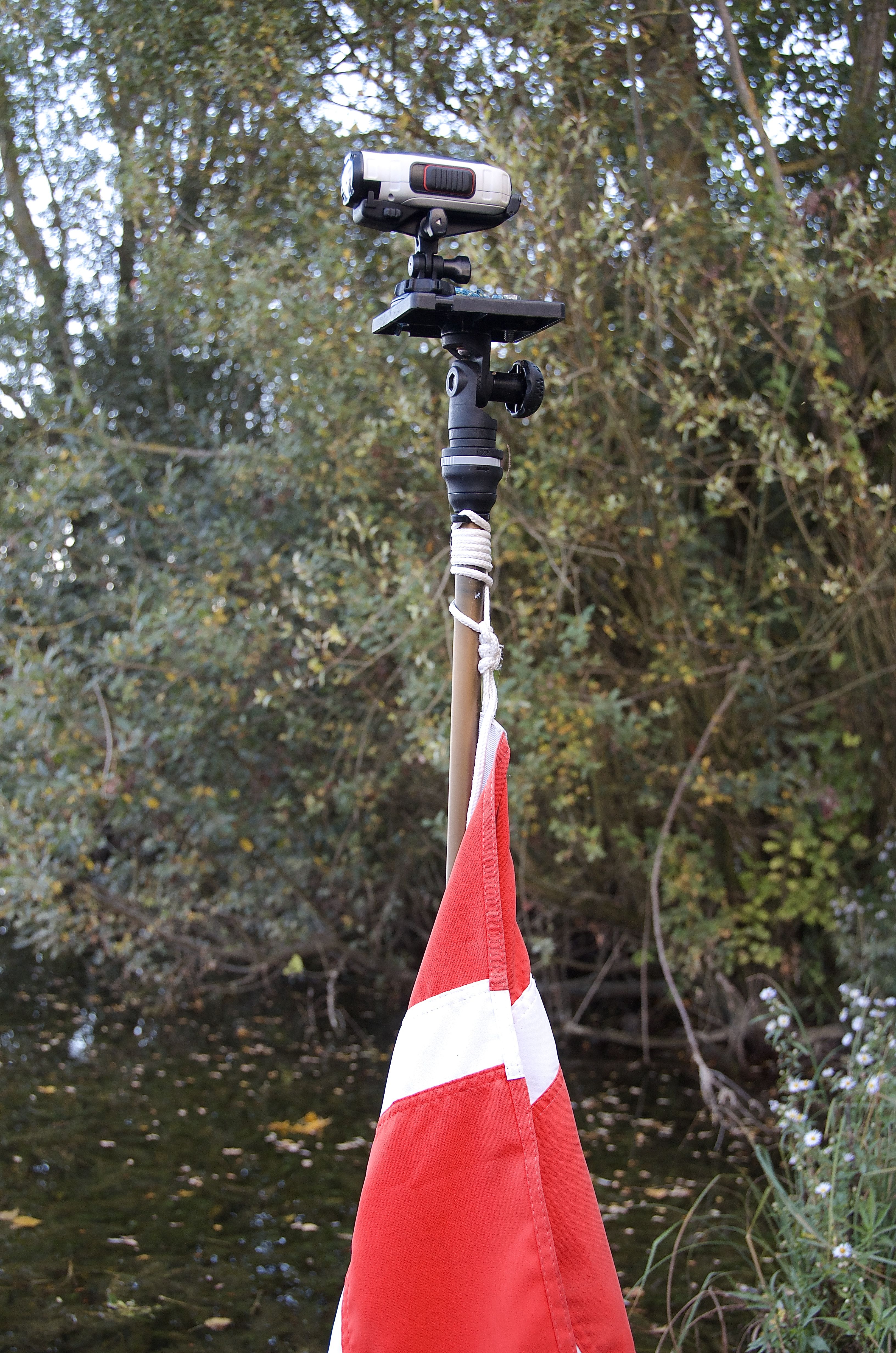 The flag/extension pole is in use all the time. Mostly as a flag holder, but we also attach the VIRB actions camera on top (here the SLR is to big) and use it in on one of the mounts. Or as an extension of your hand.
