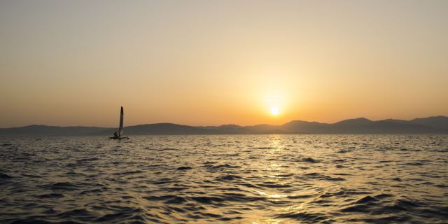 Mt Athos still a long way a way, hope to be there before night fall, but we didn’t.. / Bjerget Athos er stadig lang væk, håbede på at være der inden mørket, det nåede vi ikke..