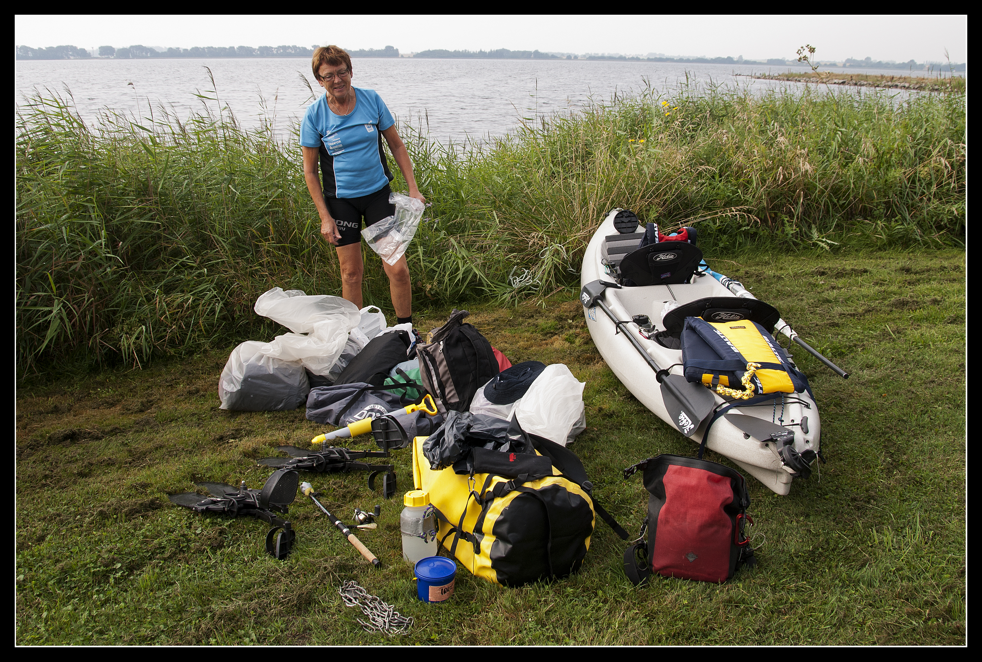 Min mor i gang med at pakke kajakken. Starten var lidt uoverskuelig, men alt kom ned i kajakken og der var rigeligt med plads